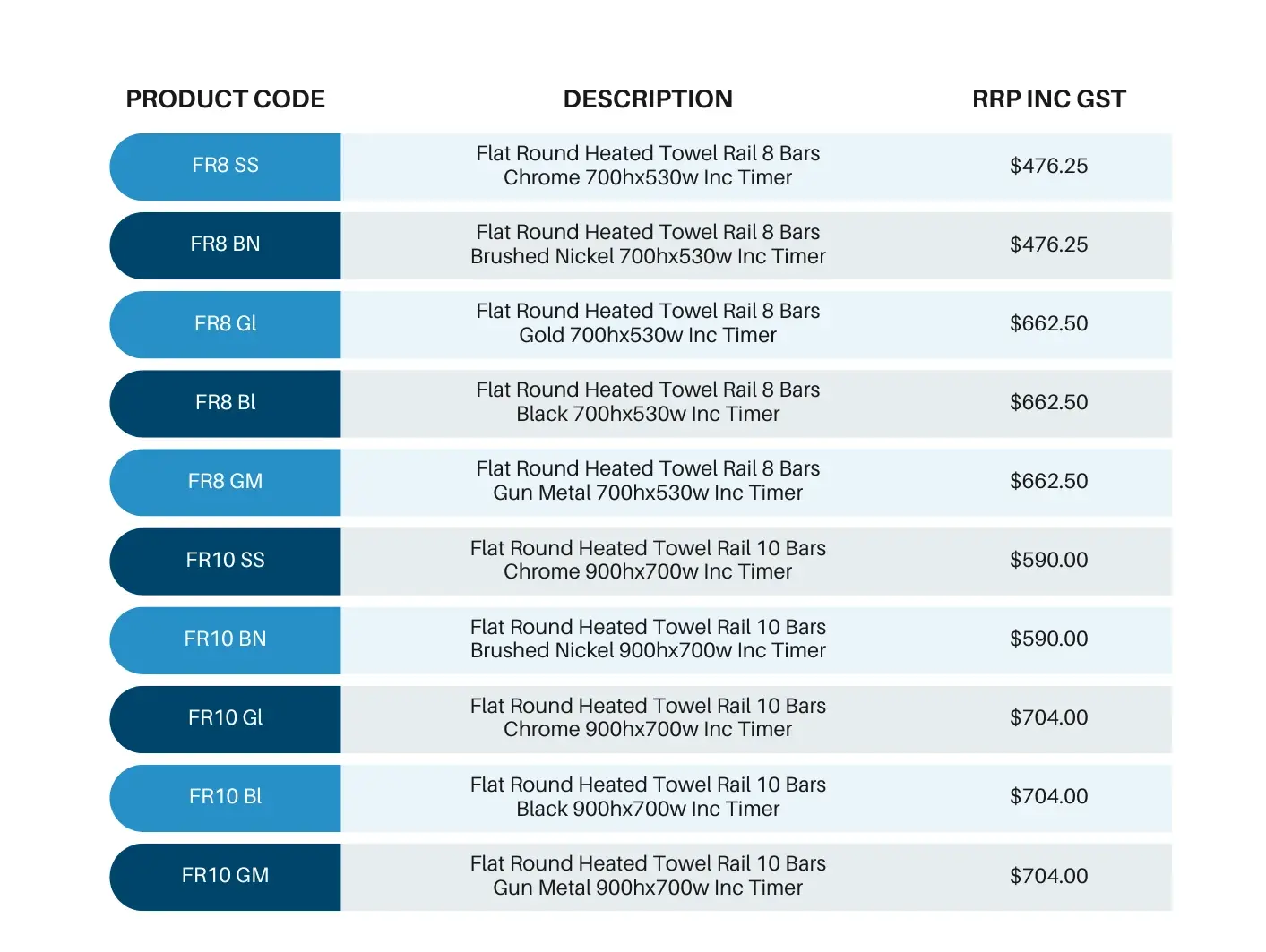 THE FLAT ROUND TOWEL RAIL is perfect in its simplicity. Round uprights and flat round cross beams are classical in design and brilliant in functionality. It is understated yet still offers that luxury and touch of uniqueness to your new bathroom. Concealed wiring components are included and as with all Hotwire wall mounted products it is manufactured from 304 grade stainless steel.